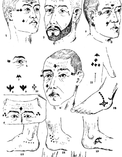 The woman who applied the tattoos held a specific social role. She was called by various terms depending on the region, but her function was consistent: she was a specialist who travelled between villages, carrying her tools and her knowledge with her. She was often described as a wise woman — someone with knowledge of herbal medicine, spells and protective formulas, and remedies for the evil eye and interventions against malevolent spirits. The tattooing was part of a broader practice that included healing, counselling, and the transmission of news between communities.