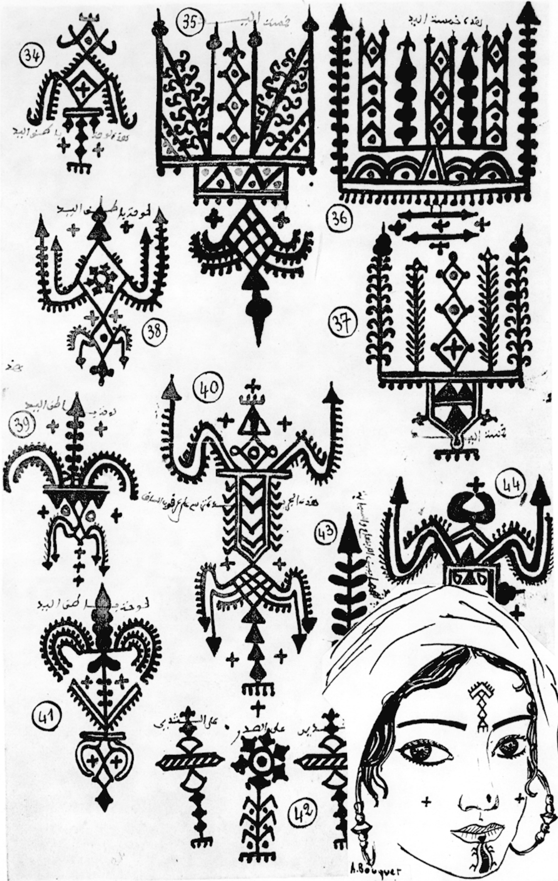 In many communities, the symbolic functions of tattooing — marking transitions, providing protection, expressing identity — have been transferred to henna (harquus). Henna provides temporary marks that can serve similar ceremonial purposes (particularly at weddings) without the permanence and religious objections associated with tattooing. The geometric vocabulary of the tattoos often reappears in the henna designs — the same motifs, the same placement logic, the same aesthetic — but the marks wash away.