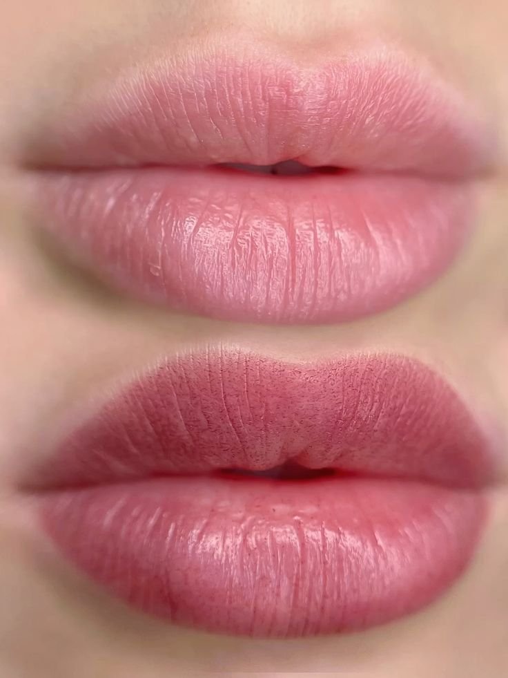 Lip work has a longer healing period than brow work (the lips swell more, crust more, and take longer to settle), and the colour typically goes through a significant shift during healing — appearing very dark immediately after application, then flaking and appearing pale or patchy during the peeling phase, then settling to the intended shade over four to six weeks. Clients who are not prepared for this healing cycle can be alarmed by the intermediate stages.