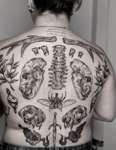 - A Japanese bodysuit (irezumi) is the most extreme version of the planned approach — a full-body composition governed by specific iconographic rules, seasonal coherence, and compositional conventions that treat the body as a single canvas.