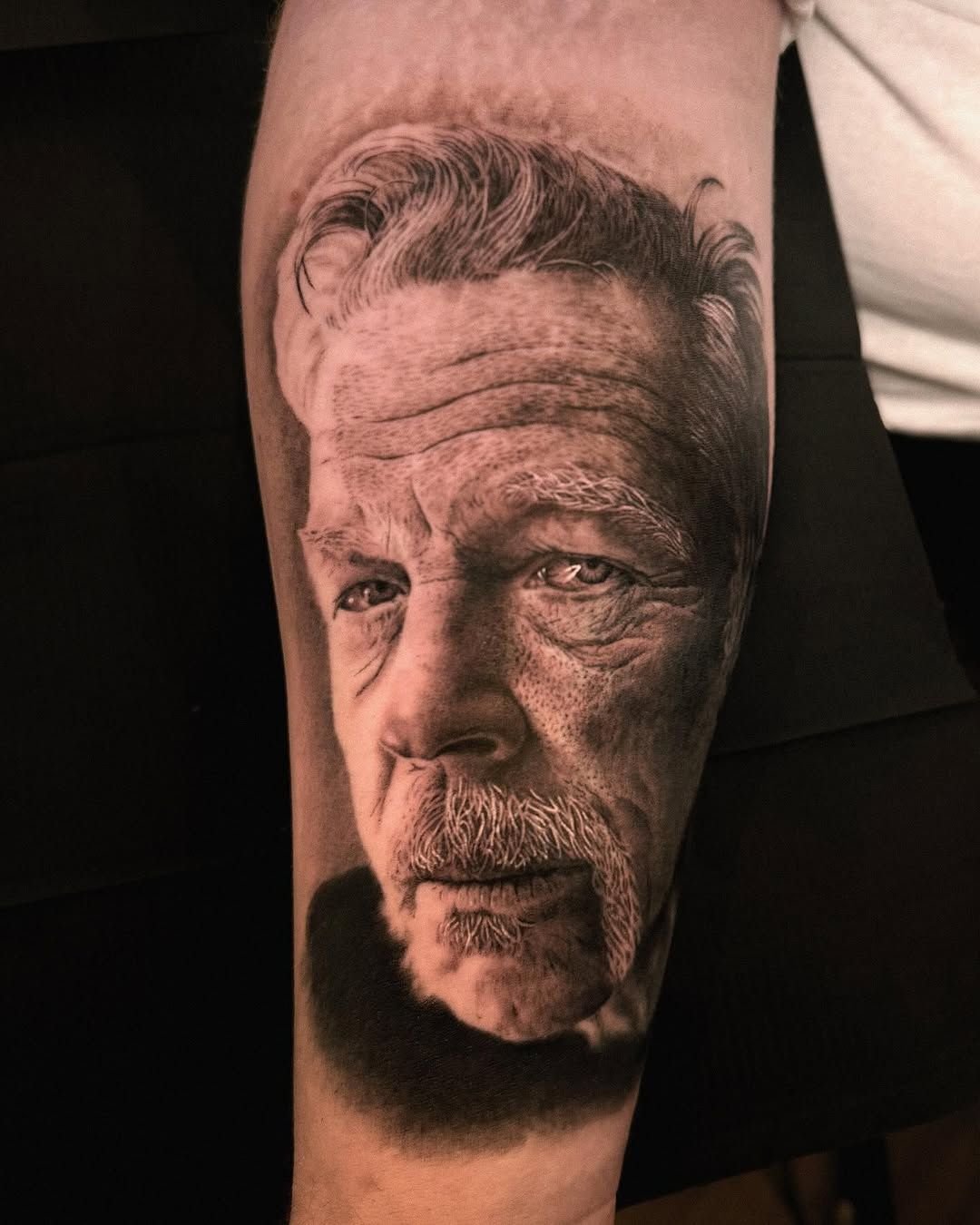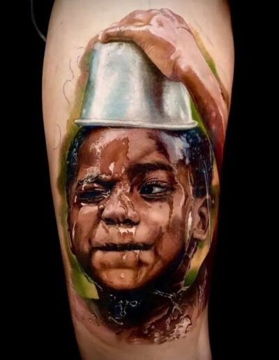 Size matters more in realism than in any other style. A portrait smaller than a large adult palm loses information rapidly as it heals and ages. Most serious realism artists refuse to do portraits below a certain minimum size, or refuse specific requests (full-family portraits crowded into a forearm, for example) that cannot be executed with the fidelity the client is imagining.