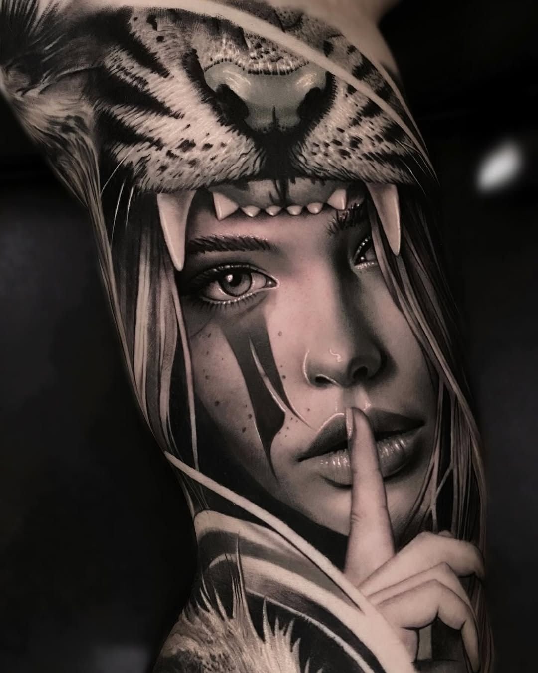 Watch the highlights. Realism depends on white for reflections, eyelight, and the brightest highlights, and white is the first pigment to disappear from a tattoo. An artist who uses white sparingly and intelligently produces work that ages better than one who relies on white for every brightest point.