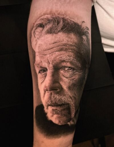A realism tattoo is built from thousands of small tonal decisions, each placed with a particular value, edge, and saturation. As the skin settles over years and decades, individual pigment particles migrate outward from their original positions. In a traditional tattoo, this migration produces a slightly softer line inside a still-legible outline, and the piece continues to read correctly. In a realism tattoo, the migration blurs the tonal boundaries that define the image. A convincing photograph of a face in 2020 becomes, in 2040, a face with less defined features; by 2060, it may be a face without enough specificity to identify its subject.
